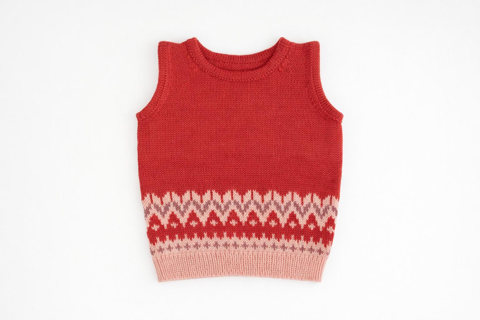 Fair Isle Merino Vest in Cranberry Red